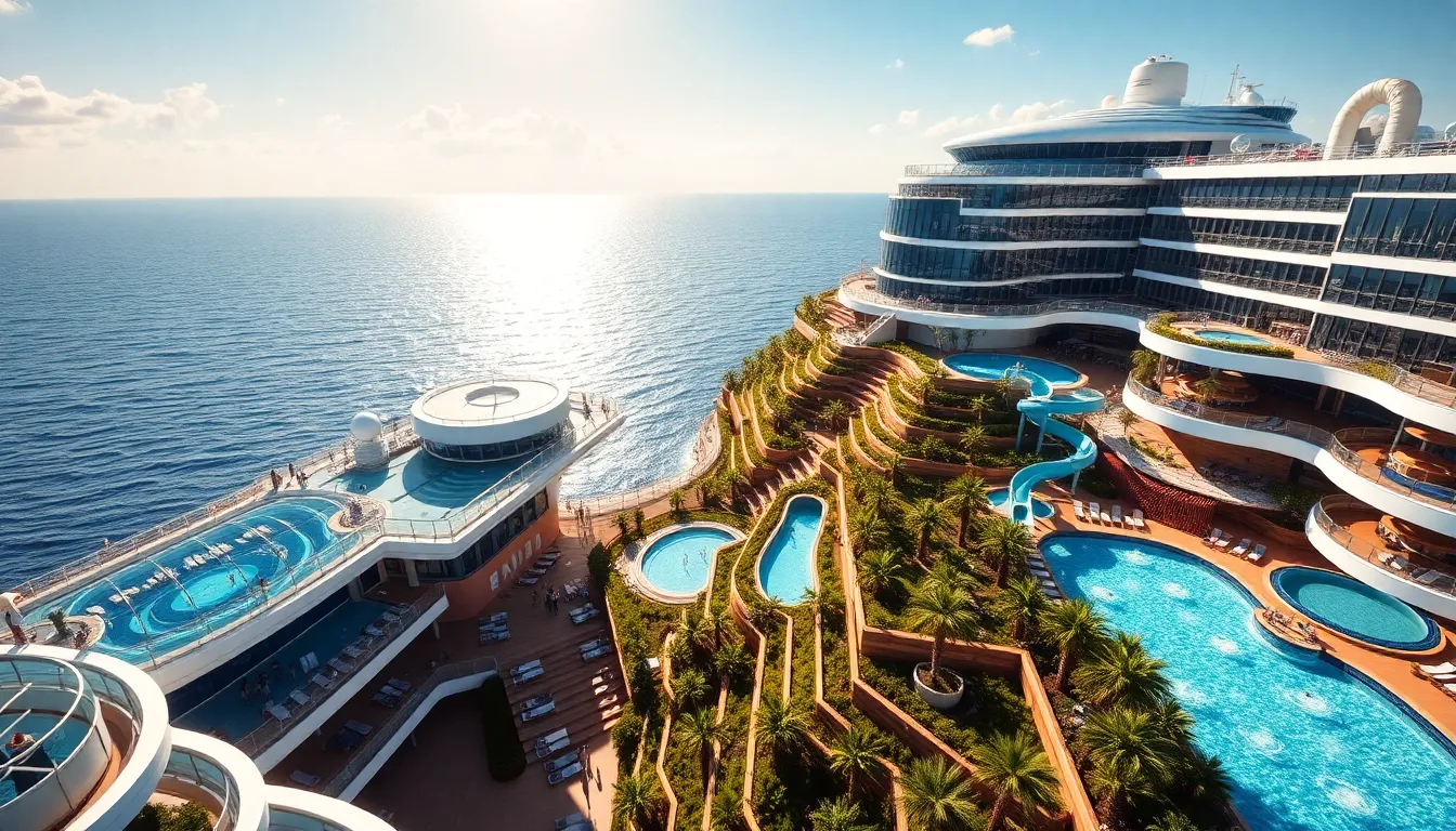 Onboard amenities cater to diverse tastes and preferences. Multiple pools, including an infinity pool, invite guests to soak up the sun while enjoying scenic vistas. Innovative water slides and lazy rivers provide thrill-seekers with exhilarating experiences. Culinary options range from upscale fine dining to casual eateries, showcasing global flavors that satisfy every palate. Additionally, entertainment venues hold a variety of performances, ensuring engagements for all ages. Unique green spaces, complete with terraced gardens, offer serene spots for relaxation amidst the lively atmosphere.